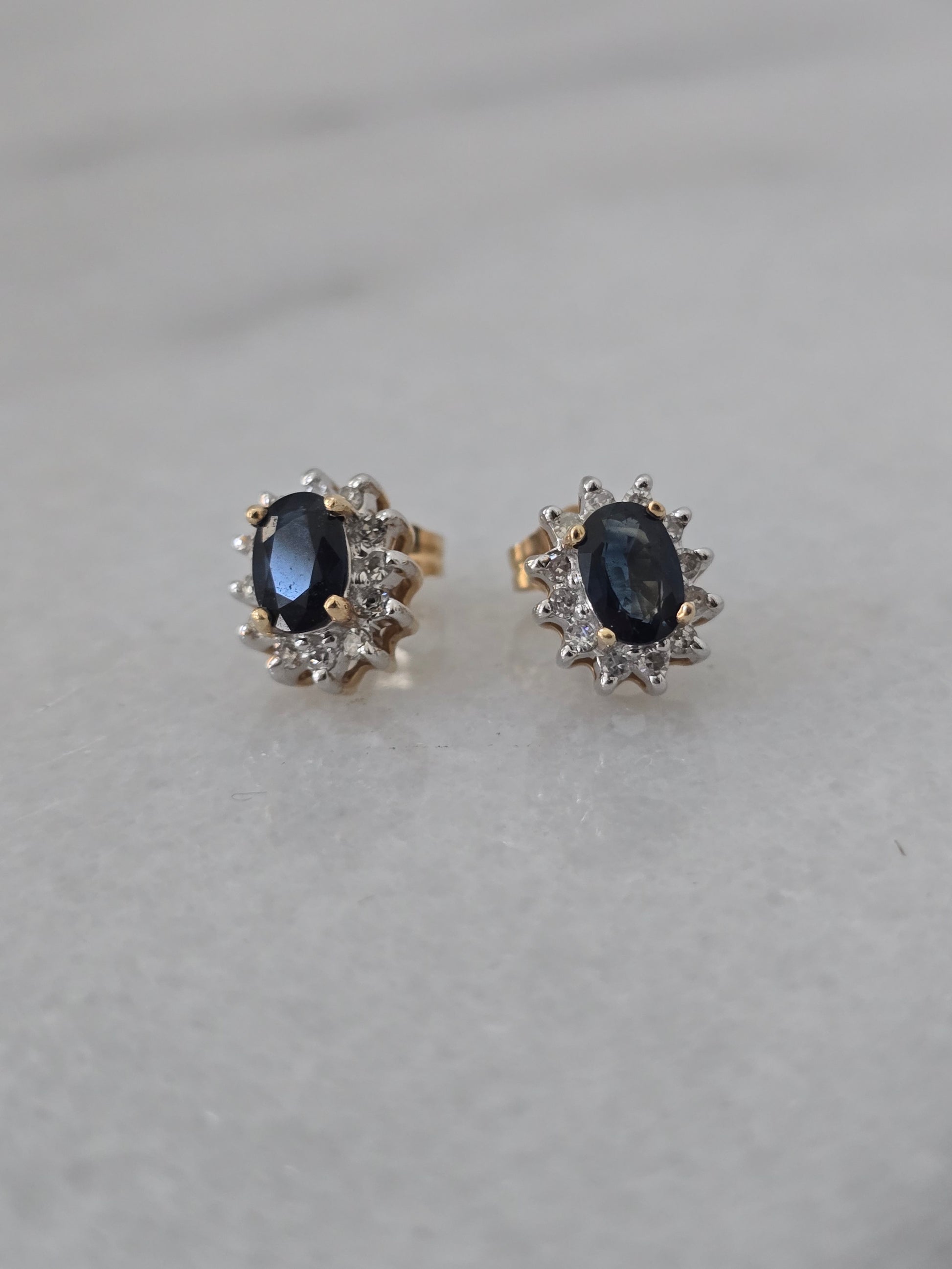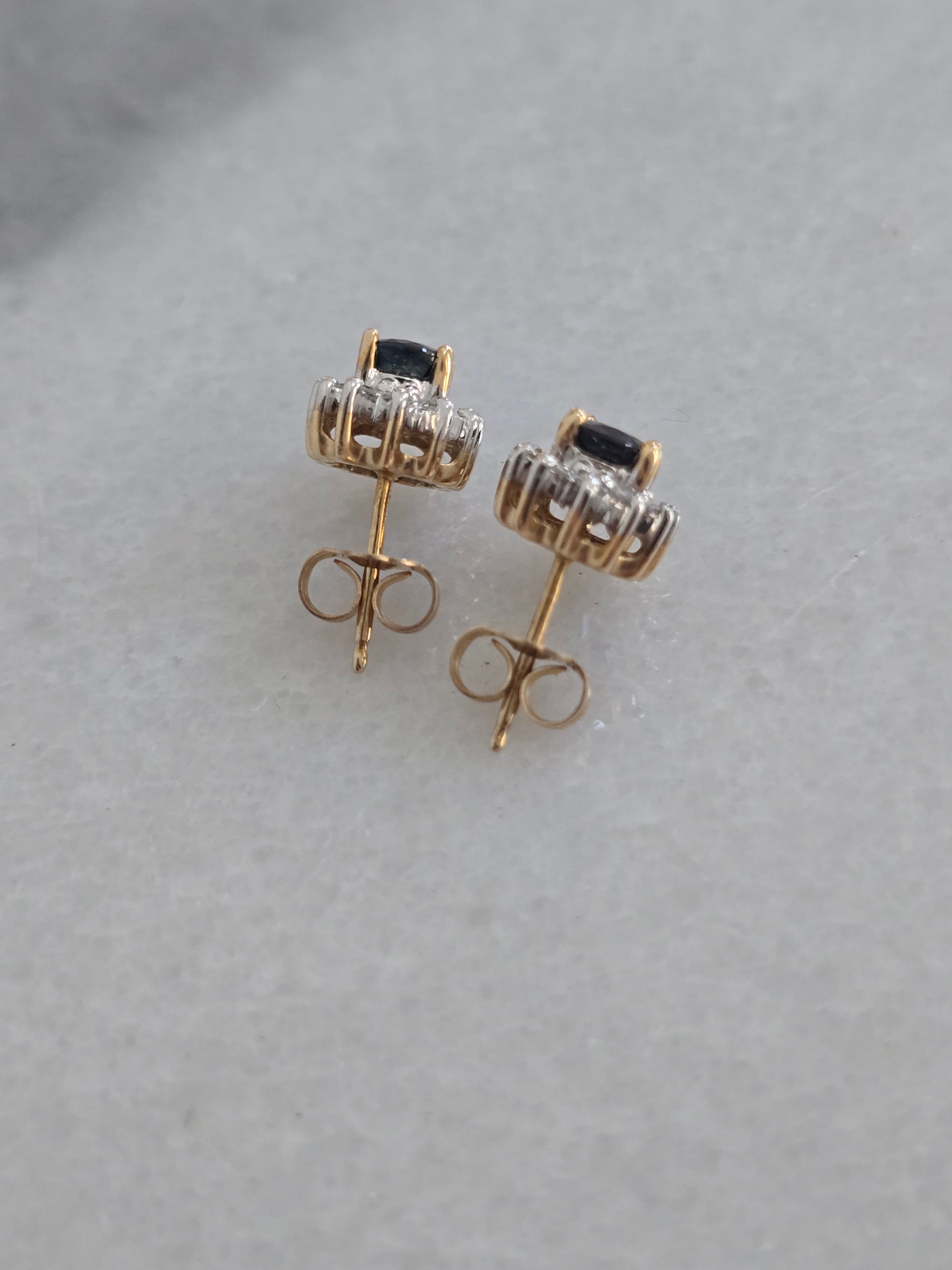 14k Yellow Gold Sapphire Diamond Halo Stud Earrings