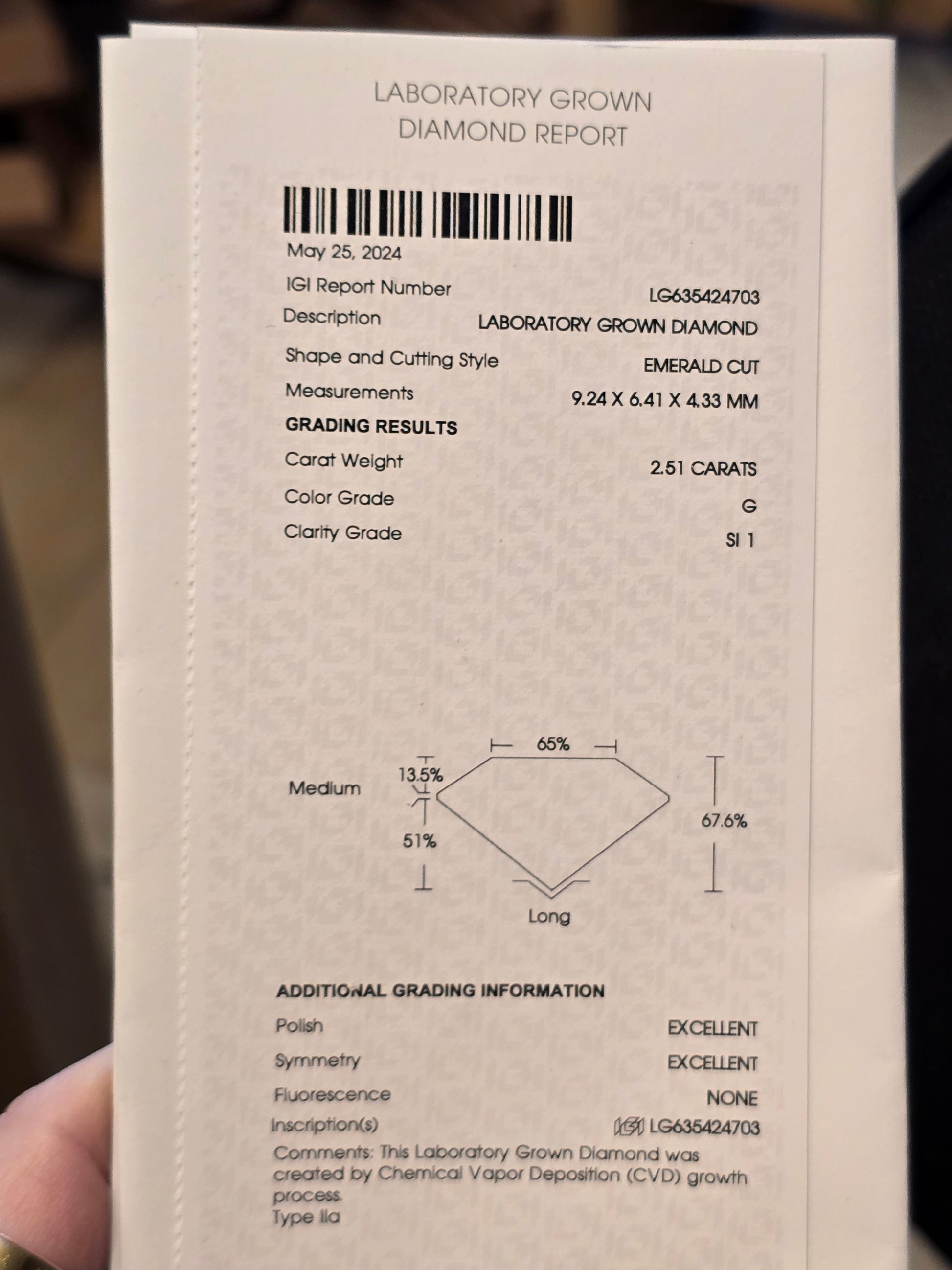 This ring includes IGI certification for the center diamond and a PGL digital appraisal. The PGL appraisal is provided as a digital copy.