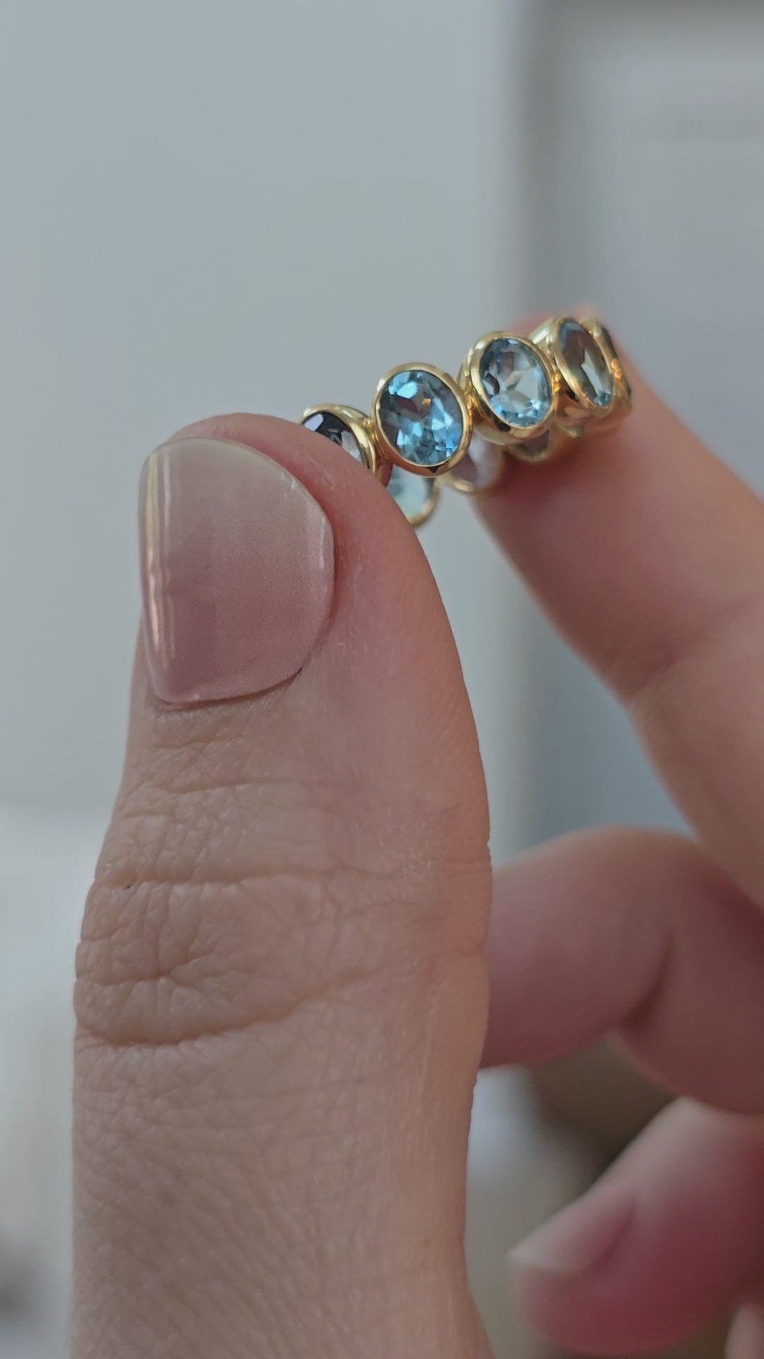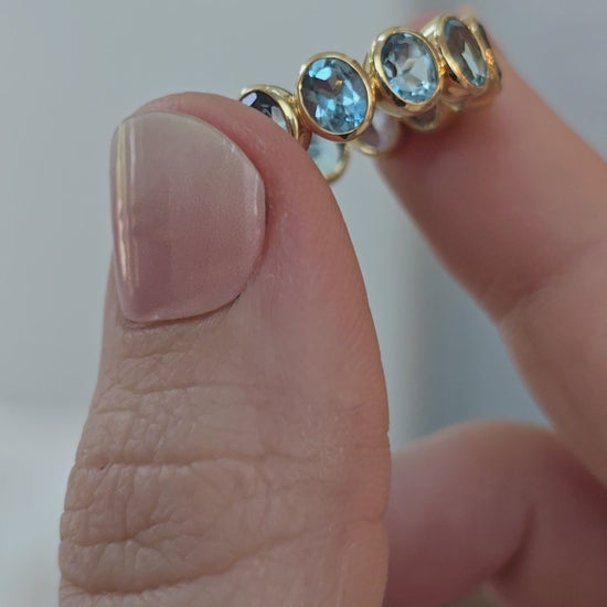 18k Yellow Gold Blue Topaz Eternity Band