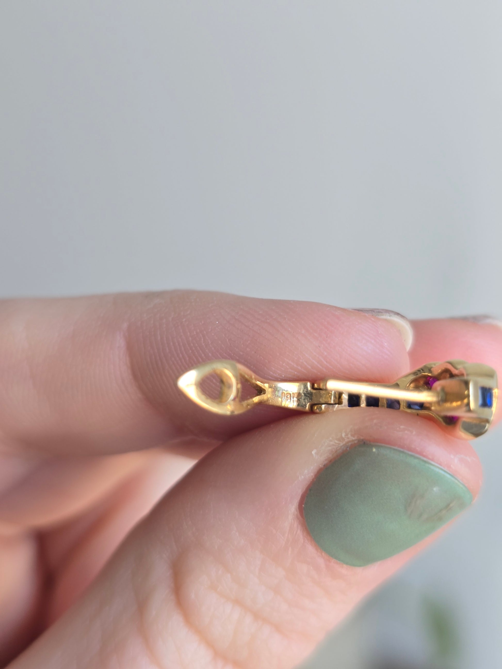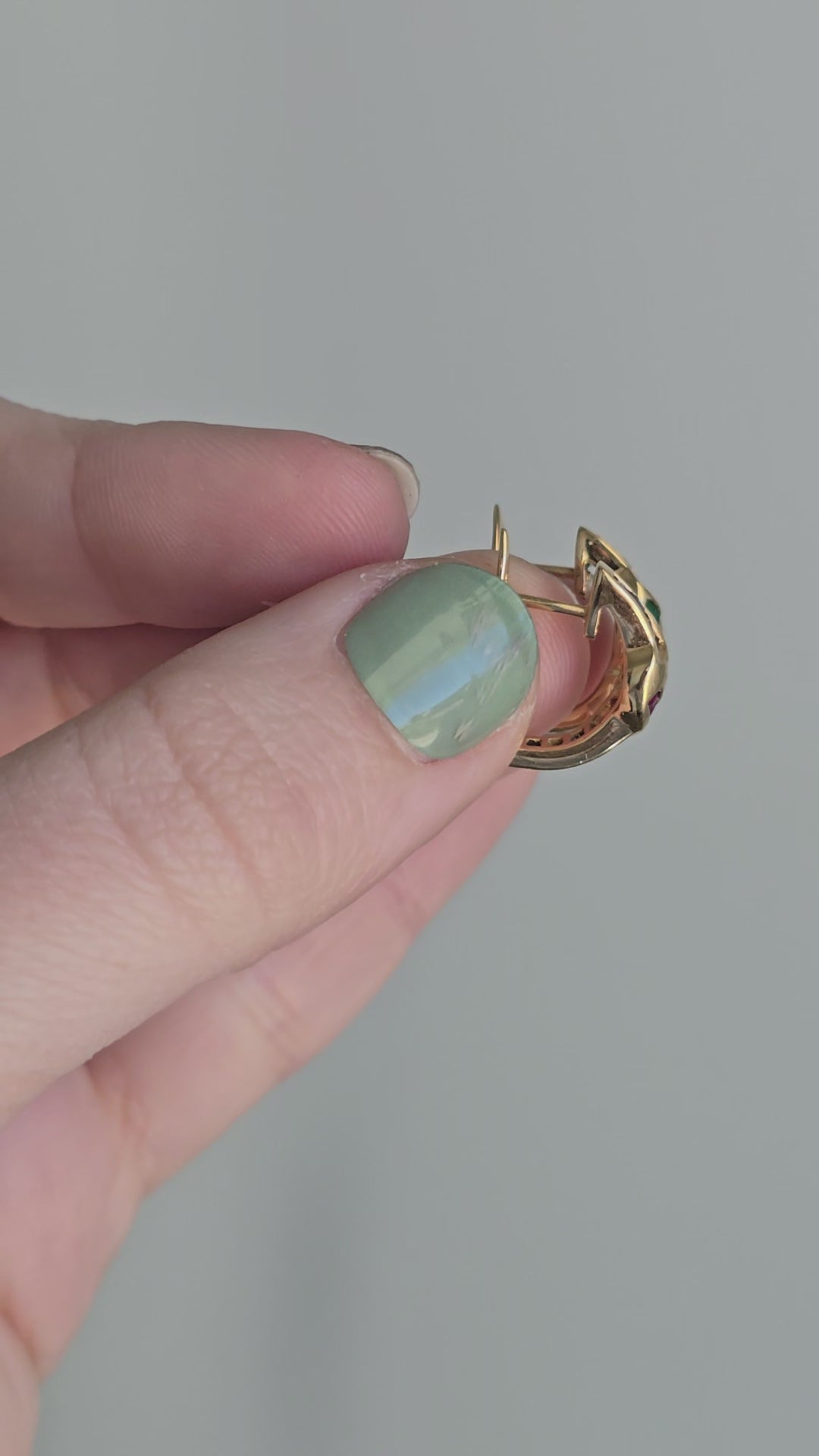 18k Yellow Gold Ruby, Emerald, Sapphire and Diamond Hoop Earrings
