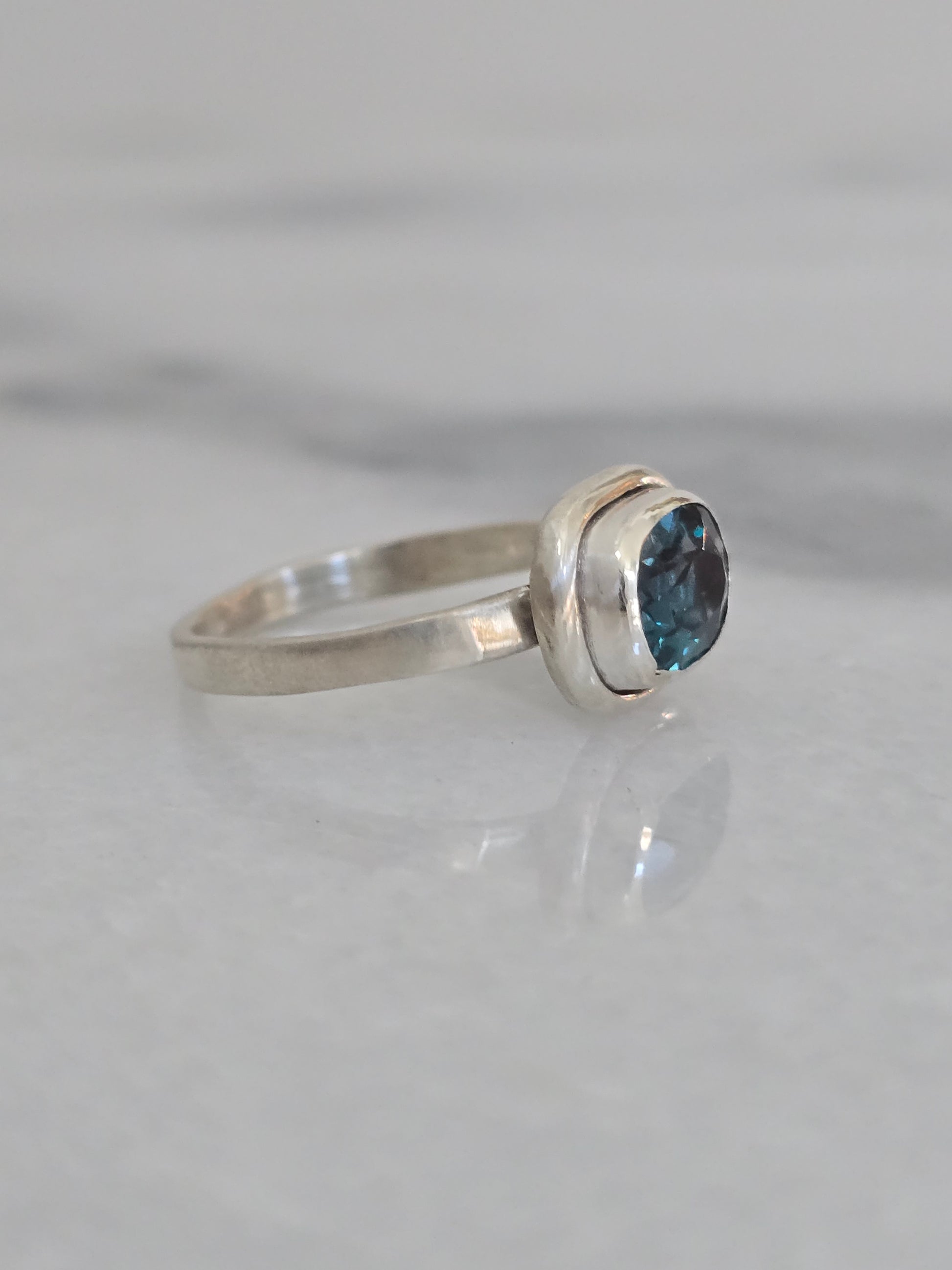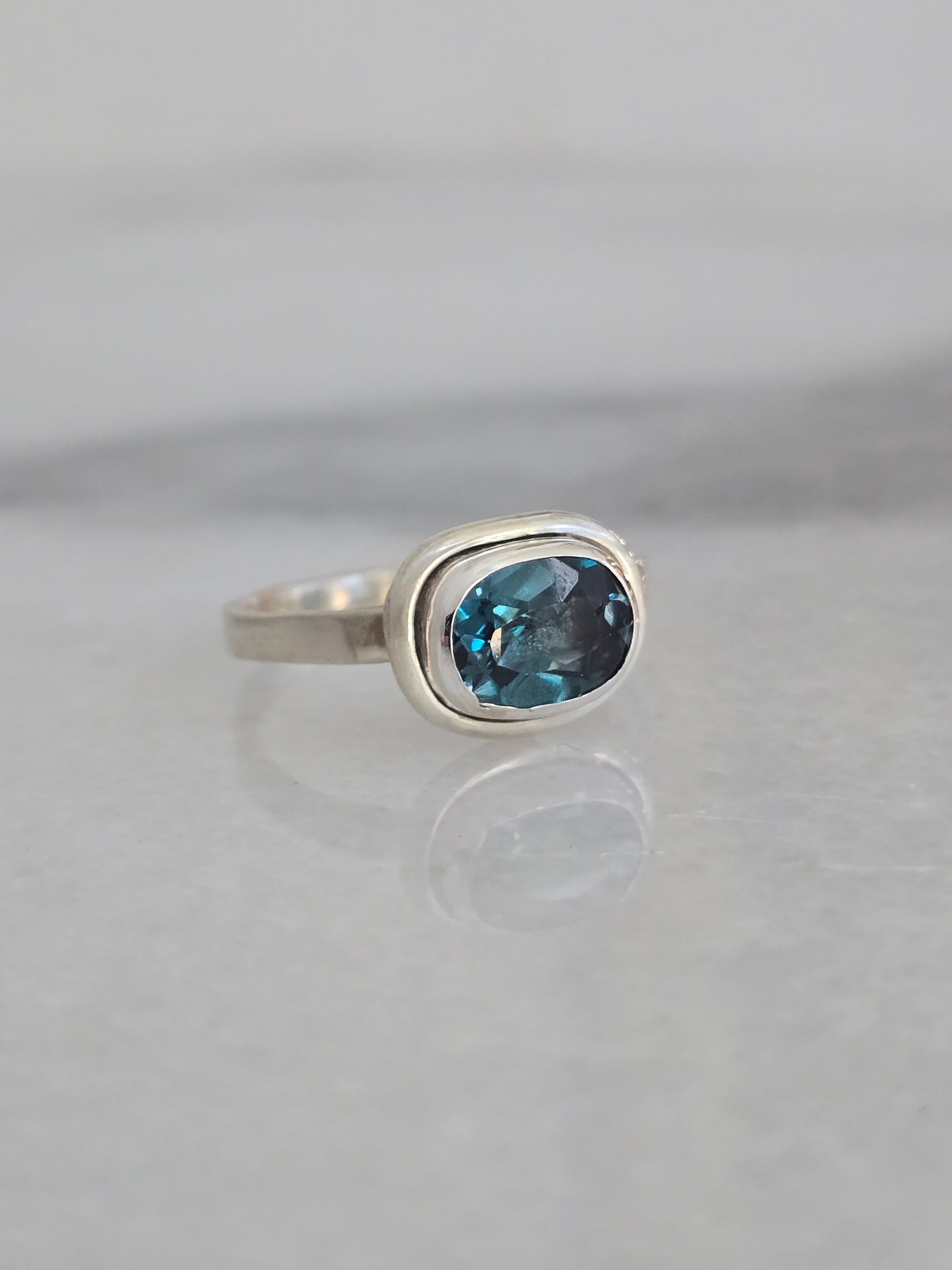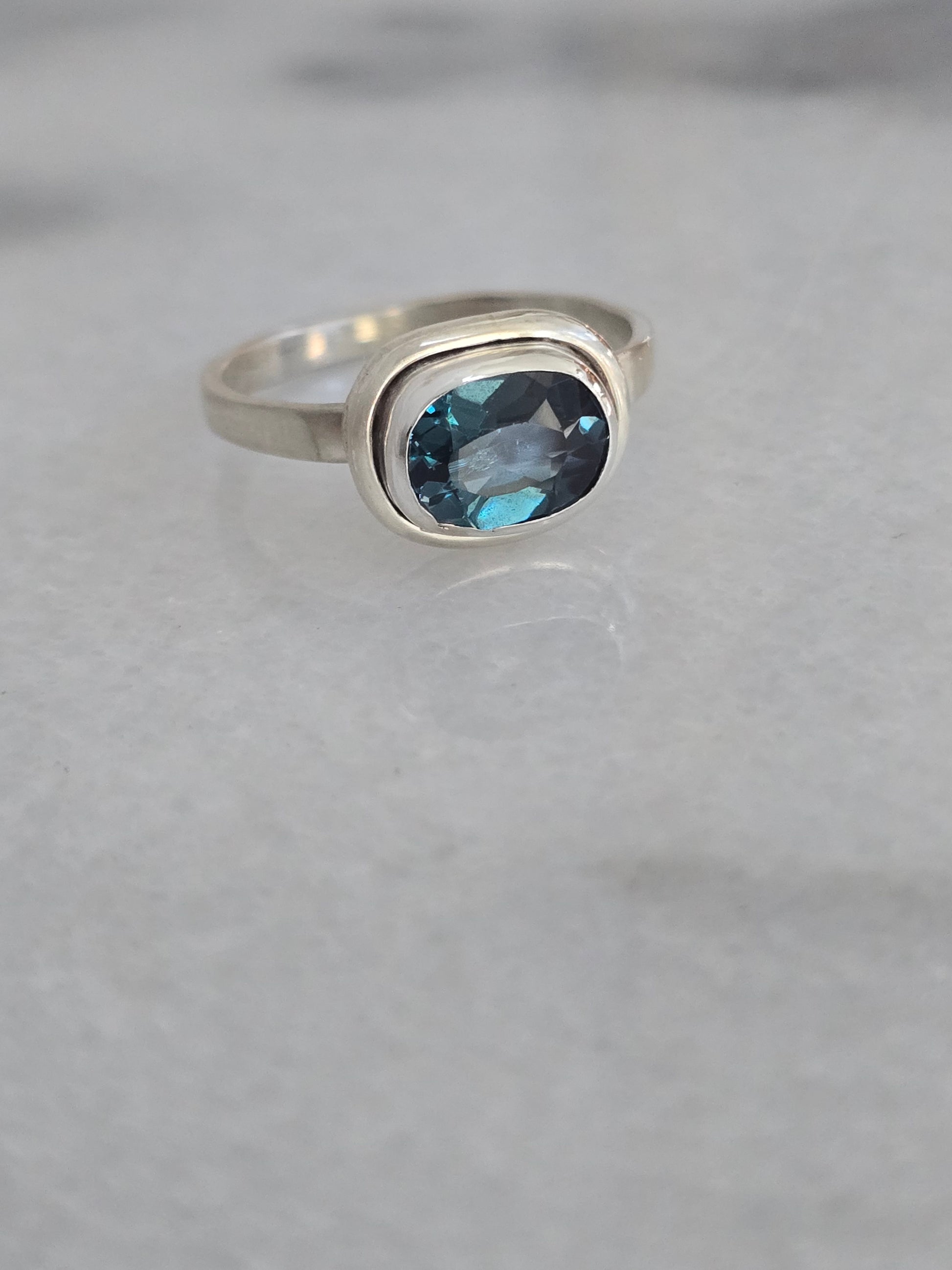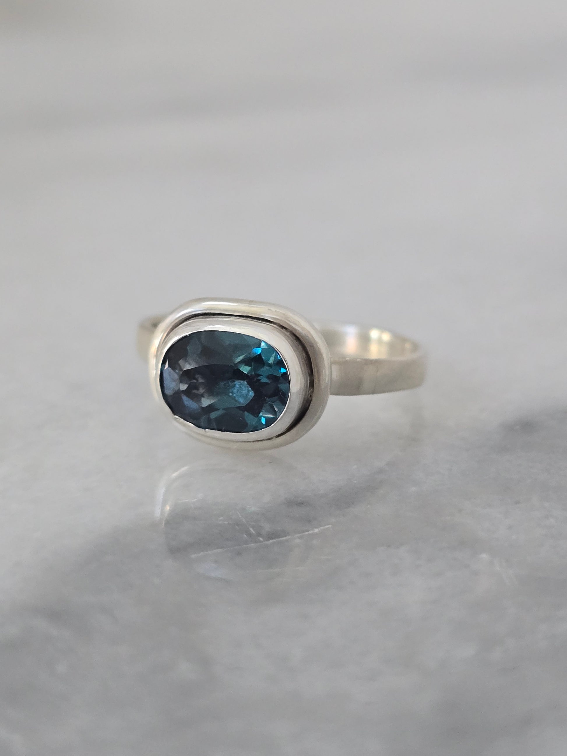 Dive into color with the Lagoon Ring, featuring a bold London Blue Topaz set in a smooth sterling silver bezel. Its deep teal tones evoke the mystery and beauty of hidden coastal waters, while the minimalist setting allows the gemstone’s brilliance to take center stage.