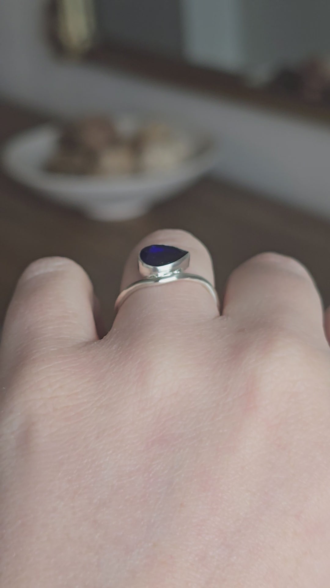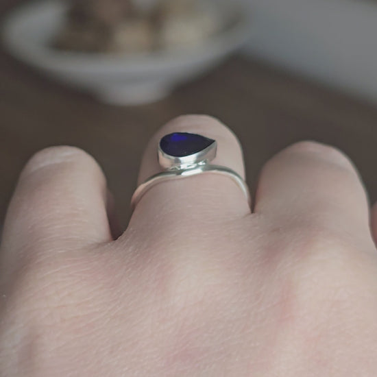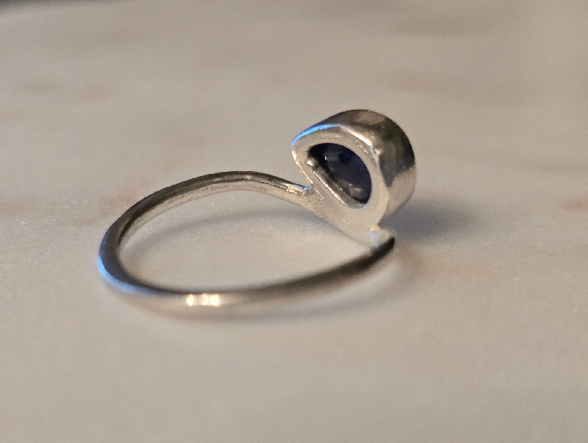 The Meridian Ring - Handmade East–West Pear Blue Sapphire - Size 6